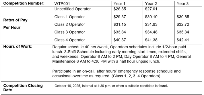 Ref # WTP2025 - Wastewater Treatment Plant - Full Time - CUPE